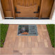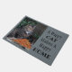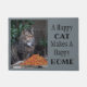Ce paillasson amoureux des chats dit : "Un Chat Heureux Fait Une Maison Heureuse." Le chat sur le tapis de porte est un beau et grand félin / chat abandonné (probablement partie Maine Coon) qui vit avec une petite colonie de chats dans le lierre d'une épicerie dans une ville animée. Il est assis à côté d'une souche d'arbre qui contient une très grande pile de nourriture pour chat. Ce beau chat a un coeur tellement reconnaissant et vient courir pour de la nourriture et de l'eau que les gens aimables quittent régulièrement pour lui et ses copains. Pensez à visiter les refuges pour animaux de votre région lorsque vous décidez d'obtenir un animal de compagnie. Un chat heureux fait vraiment une maison heureuse.