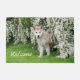 Un jeune chiot malamute de l'Alaska avec un manteau double et luxuriant se tenant dans un pré d'herbe et un buisson à fleurs blanc au printemps. Photo de chien mignonne prise par Katho Menden, ce tapis est une idée cadeau pour les amateurs de chiens et d'animaux de compagnie.