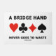 Montrez votre côté joueur de pont wry avec ce tapis porte avec les quatre costumes de carte ainsi que le pont suivant disant : "Une Main De Pont Ne Va Jamais Gaspiller". Faites faire aux autres une double prise à chaque carte qu'ils jouent avec une dose d'attitude de pont avec ce tapis de porte. Parfait matelas de porte pour n'importe quel club de bridge!