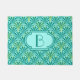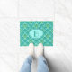 Reproduction numérique d'un tapis de porte motif classique Art Déco avec monogramme - bleu turquoise / paon sur aqua pâle, orné d'or