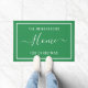 Bienvenue famille et amis à votre porte ce Noël avec ce tapis vert élégant et élégant. Customisez-le avec votre nom et changez les mots si vous voulez