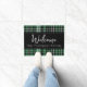 Paillasson Vert Plaid Bienvenue Monogramme Nom de famille Doo