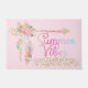 Fille rose vif et or boho plume floral fleur Summer Vibes mat de porte. Ce joli tapis porte les mots "Summer Vibes" en rose chaud, violet et aqua, avec des confettis étincelants à la parties scintillant d'or. Ce tapis porte également une flèche en or brillant, rose, pêche, lilas, violet, bleu, vert et turquoise en plume de saumons.