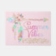 Fille rose vif et or boho plume floral fleur Summer Vibes mat de porte. Ce joli tapis porte les mots "Summer Vibes" en rose chaud, violet et aqua, avec des confettis étincelants à la parties scintillant d'or. Ce tapis porte également une flèche de plume de sauce boho brillant doré, rose, lilas, bleu et turquoise.