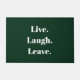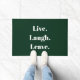 Enfin, un dicton inspirant pour les introvertis parmi nous. "Vis ! Rire. Pars." proclame ce tapis humoristique, qui s'adresse aux introvertis, aux anti-sociaux et aux maladroits socialement, qui reçoivent les invités avec un peu de réticence et peut-être même un peu d'anxiété. Une typographie blanche simple et moderne sur un arrière - plan vert de forêt classique. Inattendu, décalé et juste un peu sarcastique, ce tapis de portes amusant est parfait pour ceux qui apprécient l'humour sombre et sec et n'ont pas peur de le partager avec leurs visiteurs (qu'ils espèrent partir bientôt).
