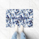 Ce tapis de porte amusant à thème volleyball dispose d'un motif de taille marine variée, bleu clair et blanc volleyballs à différentes profondeurs surplombant un accent de détail net - personnalisez avec son nom - blanc couleur arrière - plan peut être customisé - par katz_d_zynes