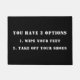 Vous Avez 2 Options : 1. Essuie tes pieds, 2. Retirez Vos Chaussures. Obtenez leur attention avec un message amusant ou personnalisez avec votre propre message. Arrière - plan noir avec texte blanc.