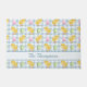 Destei's watercolor baby chick and pastel eggs on a blue gingham background arranged into a repeating Easter pattern. There is also a personalizable text area perfect for a family name or other custom text such as "Happy Easter!" or simply to say "Welcome".