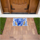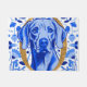 Weimaraner colourized in blue hues with a gold leaf letter "O" and a Blue and White decorative floral pattern background. This is a custom design for the Ontario Weimaraner Rescue and Assistance (OWRAssist). A percentage of the proceeds goes toward helping rescued Weimaraners.