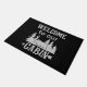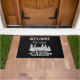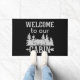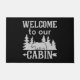 A Welcome To Our Cabin Large Doormat In Black And Blues, Done In Pine Trees And White Bear