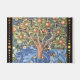 William Morris Tapisserie de pics Art Vintage floral Il montre un pic assis dans la branche d'un arbre fruitier et présente un arrière - plan orné distinctif d'feuilles bleus et de fruits orange.