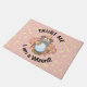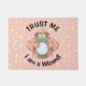 Vieux sorcier avec cape rose regardant la boule de cristal magique.