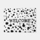Matelas de bienvenue recouvert de taches dalmates. Le texte peut être personnalisé avec votre nom de famille. Une porte parfaite pour les amoureux de les chiens dalmates.