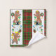 Photo de Noël avec un garçon et une fille en pain d'épice entre un heureux bonhomme de neige avec étoiles, couronne et sucres de canne avec un arrière - plan tartan vert rouge plaid.
