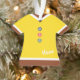 La figurine de la chemise en pain d'épice, ornée de boutons de gumdrop, présente le nom de l'être cher. Au verso se trouve le libellé "Noël 20XX". Personnalisez-vous avec votre nom, ou le nom de votre être cher ou de votre animal de compagnie. Le texte est entièrement modifiable ; vous pouvez également modifier le style de police et les couleurs du texte. D'autres couleurs sont également disponibles.