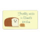 Ajoutez ces étiquettes à vos produits frais pour une touche personnelle merveilleuse à tous vos cadeaux ou même à votre entreprise. Une adorable miche de pain et de brioche design avec beaucoup de place pour personnaliser. Oeuvre originale de la ménagerie de Night Owl, 2010.