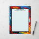 The background on this stationery paper looks like an acrylic paint pour, with bright colors in shades of blue, orange, yellow, and green. Vivid, eye-catching, modern, and stylish.