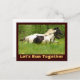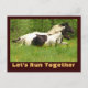 Illustration photo de deux chevaux Pinto noirs et blancs qui courent au galop avec le flirtant dicton "Couchons ensemble" dans un texte à grains de bois.
