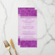 Des tourbillons et des fleurs en violet vif font un motif magnifique pour cette carte de menu mariage. Le texte customisé s'imprime sur un panneau lumineux accentué par des bordures faisant écho au motif arrière - plan. Un joli ajout à n'importe quel mariage. Utilisez-le comme menu ou tout autre imprimé dont vous pourriez avoir besoin pour votre mariage, douche ou fête d'engagement. Customisez-le avec votre propre menu ou d'autres informations sur le devant et ajoutez votre nom et la date de l'événement ou des informations supplémentaires sur le menu au dos contre le même motif. Disponible en couleurs alternatives avec produits correspondants. com