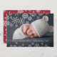 Envoyez des salutations de vacances à vos amis et votre famille dans le style chic hivernal avec nos cartes photos élégants. Deux bordures de flocon de neige apparaissent comme des superpositions sur votre photo, avec votre légende de Noël personnalisée et les noms en lettres blanches modernes. Montré avec "dormir en paix céleste". Vous pouvez ajuster la position des flocons de neige en fonction de la composition de votre photo en utilisant les outils de personnalisation de Zazzle. Les cartes retournent à un motif blanc flocon sur le rouge de canneberge festif.