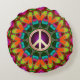Homely Hippie Home Décor : Colorés psychédéliques colorés design de mandala géométrique coussin rond / coussin avec symbole de paix or au centre de chaque côté. Même design énergisant de chaque côté, mais chacun avec une légère variation, pour donner à votre maison une option visuelle supplémentaire! Fabriqué en écoutant de la musique funky Psytrance." Améliorez votre chambre, salon, votre van ou salle de méditation avec art unique et alternatif.designs" par webgrrl.biz J'aime mes designs & Art?