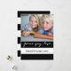 Envoyez vos salutations de vacances à votre famille et à vos amis avec ce carte photo de vacances polyvalent, audacieux et moderne avec les mots "Paix, Joie, Amour" écrit dans une police de caractères blancs sur motif rayures gras. Design par ELKE CLARKE© POUR MONOGRAMGALERIE. Remplacez l'exemple de photo par le vôtre. Arrière - plan rayé noir et blanc au dos de la carte. Autres couleurs disponibles en magasin ou sur demande.