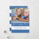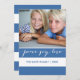 Carte de vacances photo nautique à rayures simples. Envoyez vos salutations de vacances à votre famille et à vos amis avec ce carte photo de vacances polyvalent, audacieux et moderne avec les mots "Paix, Joie, Amour" écrit dans une police de caractères blanche sur motif rayé gras. Design par ELKE CLARKE© POUR MONOGRAMGALERIE. Remplacez l'exemple de photo par le vôtre. Arrière - plan rayé bleu et blanc au dos de la carte. Autres couleurs disponibles en magasin ou sur demande.