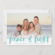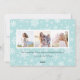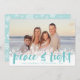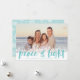 Les cartes photos d'Hanoukka modernes présentent votre image préférée avec une bordure blanche en flocon de neige le long du fond. "Paix et lumière" apparaît dans la typographie à brosse lettrée en aqua, avec vos noms et l'année en dessous. Customisez le flocon de neige avec trois photos supplémentaires et un message personnel.