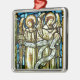Image en verre tendu de deux anges portant le message "Paix sur terre et bonne volonté aux hommes, gloire à Dieu au plus haut"