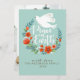 Une jolie carte de Noël avec une colombe dans une couronne fleurie avec les mots paix sur Terre. La carte de Noël est conçue en turquoise, rouge et blanc. Personnalisez-le avec votre nom, l'année et votre photo de famille au dos de la carte. Conçu pour vous par Blackberry Boulevard.
