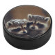 Palet De Hockey Bébé Raccoons se blottit dans la neige tombante