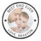 Créez une rondelle de hockey photo personnalisée pour un père spécial avec le titre éditable suggéré BEST DAD EVER et votre texte personnalisé en noir. CONSEIL PHOTO : Pour obtenir les meilleurs résultats, choisissez une photo avec le sujet au milieu et/ou pré-rognez-la sur une forme carré AVANT de télécharger. Contactez le concepteur via Zazzle Conversation ou makeitaboutyoustore@gmail.com si vous souhaitez modifier ce design.