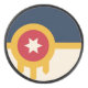 Hockey Puck avec un design avec le drapeau de Tulsa, Oklahoma. Un drapeau beige et bleu marine avec un bouclier or Osage contenant un cercle rouge et une étoile beige à six branches