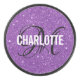 Puc monogrammé moderne avec un nom blanc et un monogramme de script noir sur un arrière - plan de parties scintillant violet. Personnalisez avec le nom et l'initiale.