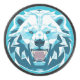 Illustration géométrique moderne avec le visage féroce et expressif d'un ours polaire, représentant la force et la puissance sauvage, présentée dans un style artistique bleu glacé.