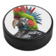 Funny Punk Rocker Parrot avec coiffure mohican portant une veste en cuir.