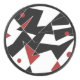 Différentes formes géométriques blanches et rouges sont disséminées sur un arrière - plan noir, créant un contraste saisissant. Certaines formes sont interconnectées à de fines lignes blanches, et des points rouges ajoutent une pop de couleur à la composition.