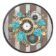 Palet De Hockey Steampunk Clock and Turquoise Roses on Striped
