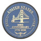 At the center is a beautifully crafted illustration inspired by the iconic Golden Gate Bridge, symbolizing American ingenuity, strength, and connection across the nation. Framing the design, refined gold accents highlight the inscription “United States – 250th Anniversary – 1776–2026,” marking this once-in-a-generation celebration of American history. The gold accents are highlighted by a deep blue background.