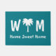 Tapis de porte de palmier personnalisé pour la maison de plage tropicale. Scène côtière. Lettre monogramme mat de porte bleu turquoise pour maison de bord de mer. Créez votre propre panier monogrammé personnalisé avec un arrière - plan couleur personnalisé. Ajoutez votre propre message de bienvenue, nom de famille, monogramme, nom de famille ou citation amusante. Idée cadeau mignonne pour les amis, les jeunes mariés et la famille avec nouvelle maison / fête de ménage. Arrière - plan couleur personnalisé. Élégante typographie de script chic. Modèle de porte personnalisable. Créez votre propre tapis d'entrée pour porte d'entrée / entrée ou hall / salle de mariages, véranda, jardin etc. Décor / décoration personnalisée pour votre maison. Disponible en petite et grande taille. La typographie amusante avec le dicton ; maison douce.