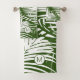 Motif en feuille de palmier vert profond avec une ambiance tropique moderne et monogramme sur les serviettes de bain qui sera très belle dans une salle de bain rétro thème de la plage.