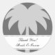 Palm tree mariage merci stickers | scelleur d'enveloppe. Motif en chevron noir et blanc mignon avec un texte élégant pour le nom de mariée et de mariée. Peut également être utilisé chez les chasseurs d'enveloppe fantaisie et pour les faveurs de mariage. Le design tropical.