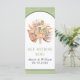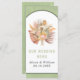 Feuilles de palmiers séchés tropicaux, pampas herbe et fleurs de protéa sauge vert terre cuite arche botanique mariage carte menu. Ce joli design mariage dispose d'un cadre en arc sur un arrière - plan teinté vert sauge. Dans le cadre il y a un bouquet de feuilles de palmiers séchés, des fleurs de protéa et de l'herbe de pampas.