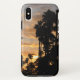 Un coque iphone avec une ligne historique de palmiers, rendu célèbre par Hollywood, sont en silhouette contre des nuages roses et oranges au coucher du soleil à Los Angeles, Californie. Cliquez sur Customiser pour sélectionner vos polices et ajouter votre propre nom ou message.