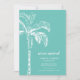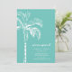 Faire-part tropicale en mouvement avec un palmier posé sur un arrière - plan bleu aqua avec un palmier assorti.
