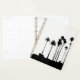 Ce design présente une silhouette minimaliste noire et blanche de palmier à l'avant et à l'arrière.