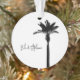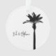 Silhouette de palmier en noir sur blanc arrière - plan avec nom et nom personnalisés en noir, motif sur le dos. Facile à personnaliser le texte, la couleur du texte, la police. Idéal pour toute occasion spéciale, vacances tropicales, souvenir de voyage, thème de la plage, fête d'anniversaire, ornement d'anniversaire, ambiance côtière. Moderne, Chic, Amusant. Mélanger et faire correspondre toute la collection Palm Tree par TMCdesigns.