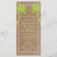 Palmiers Distressed Vintage Plage Programmes de mariage vertical avec deux palmiers au sommet. Thème vert et violet. L'arrière - plan est un style de papier brun rustique en détresse. Ils sont parfaits pour les programmes de mariage à la plage ou de mariage de destination. Il s'agit d'un programme de mariage vertical à deux côtés de 4" x 9". Il suffit d'utiliser les champs modèles pour ajouter vos propres détails de cérémonie de mariage ou d'utiliser le bouton "Customiser" pour ajouter ou supprimer des lignes de texte ou déplacer des choses. programmes de mariage bon marché, programmes de mariage bon marché, programmes de mariage vertical, programmes de mariage à deux côtés, programme de mariage de plage, programme de mariage de destination, programme de mariage, palmier, tropical, rustique, vintage,
