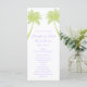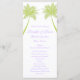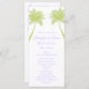 Palm Trees Beach Programmes de mariage vertical avec deux palmiers au sommet. Thème vert et violet. Ils sont parfaits pour les programmes de mariage à la plage ou de mariage de destination. Il s'agit d'un programme de mariage vertical à deux côtés de 4" x 9". Il suffit d'utiliser les champs modèles pour ajouter vos propres détails de cérémonie de mariage ou d'utiliser le bouton "Customiser" pour ajouter ou supprimer des lignes de texte ou déplacer des choses. programmes de mariage bon marché, programmes de mariage bon marché, programmes de mariage vertical, programmes de mariage recto verso, programmes de mariage sur la plage, programme de mariage de destination, programmes de mariage, palmier, tropical,