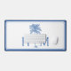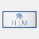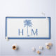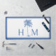 Ce tapis de bureau moderne d'inspiration côtière dispose d'un palmier bleu sur blanc avec un monogramme que vous pouvez personnaliser avec votre choix d'initiales.